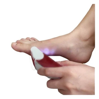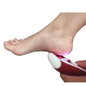 Leicht bedienbarer Pediküre-Roller mit hygienischem Reinigungspinsel und 2 Schleifaufsätzen (grob und fein). Akkubetrieben mit Ladekabel für kabellosen Betrieb. Das handliche Hornhautschleifgerät mit ergonomischem Handgriff und leicht bedienbarem An/Aus-Schalter entfernt sanft und kraftvoll die Hornhaut an Ihren Füßen. So macht Hornhautentfernung Spaß! Schnelles Reinigen des abnehmbaren, freidrehenden Rollenkopfes durch einfaches Klicksystem.